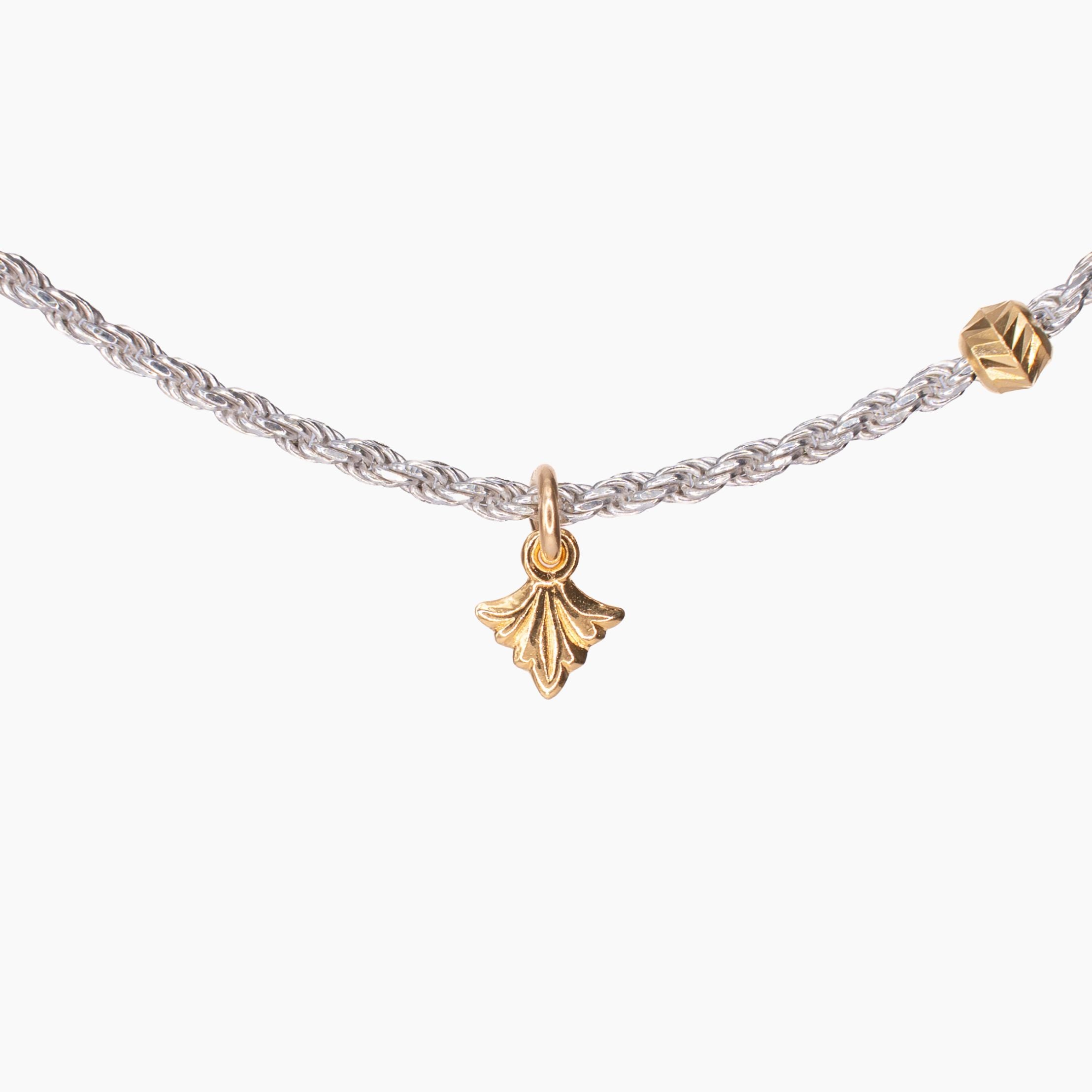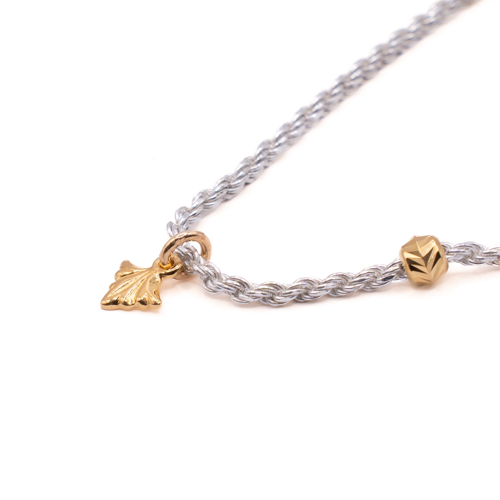 חומרים ועיצוב: חבל כסף סטרלינג 925, תליון זהב 14K, חרוז גולדפילד, סוגר זהב 14K ומנגנון סגירה משולב בעיצוב. נוחה לענידה יומיומית ואירועים.