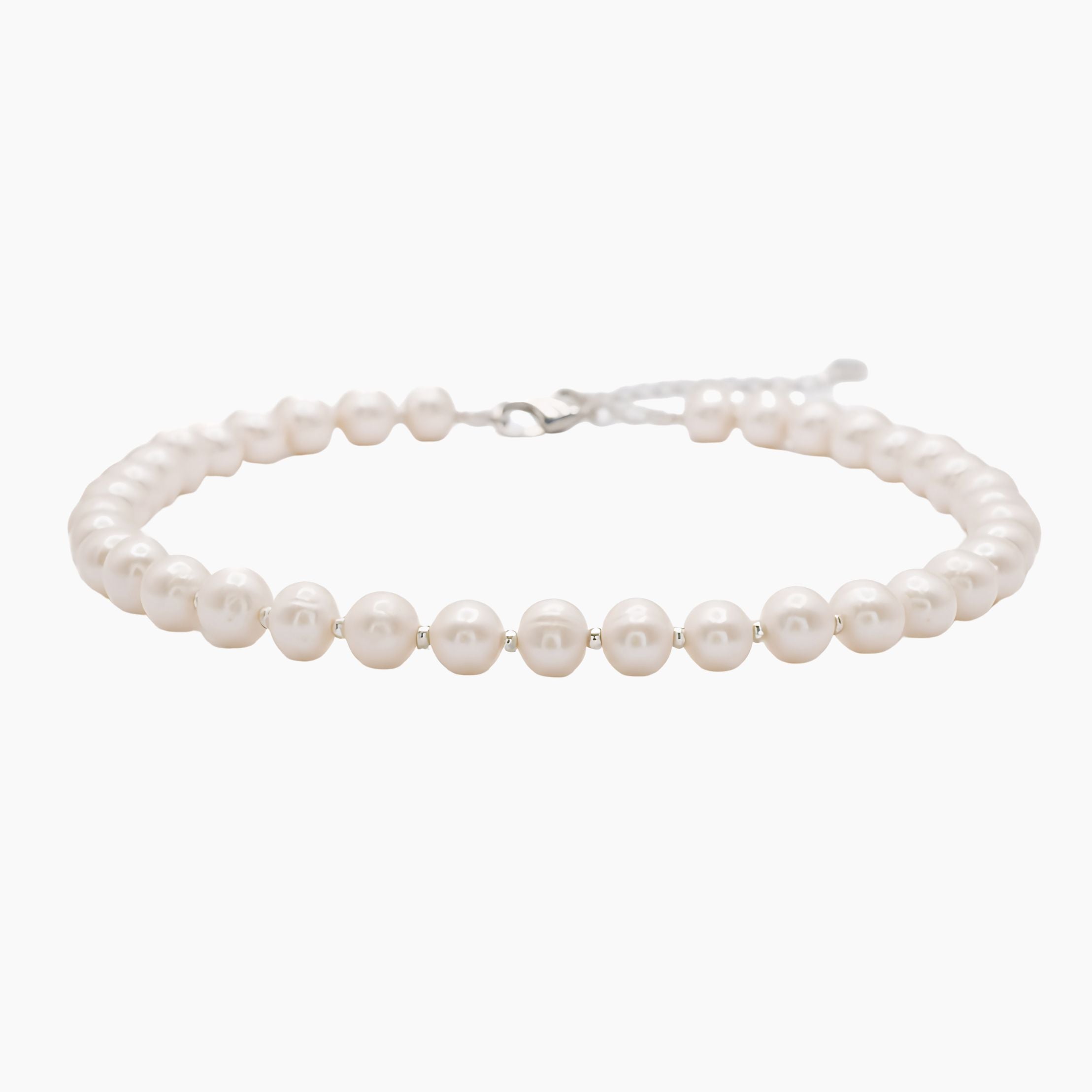 Materials & Design: Large natural pearls (~1 cm), 925 sterling silver or white-gold beads, matching clasps, and a nylon-coated metal wire. Water-resistant and comfortable for daily wear.